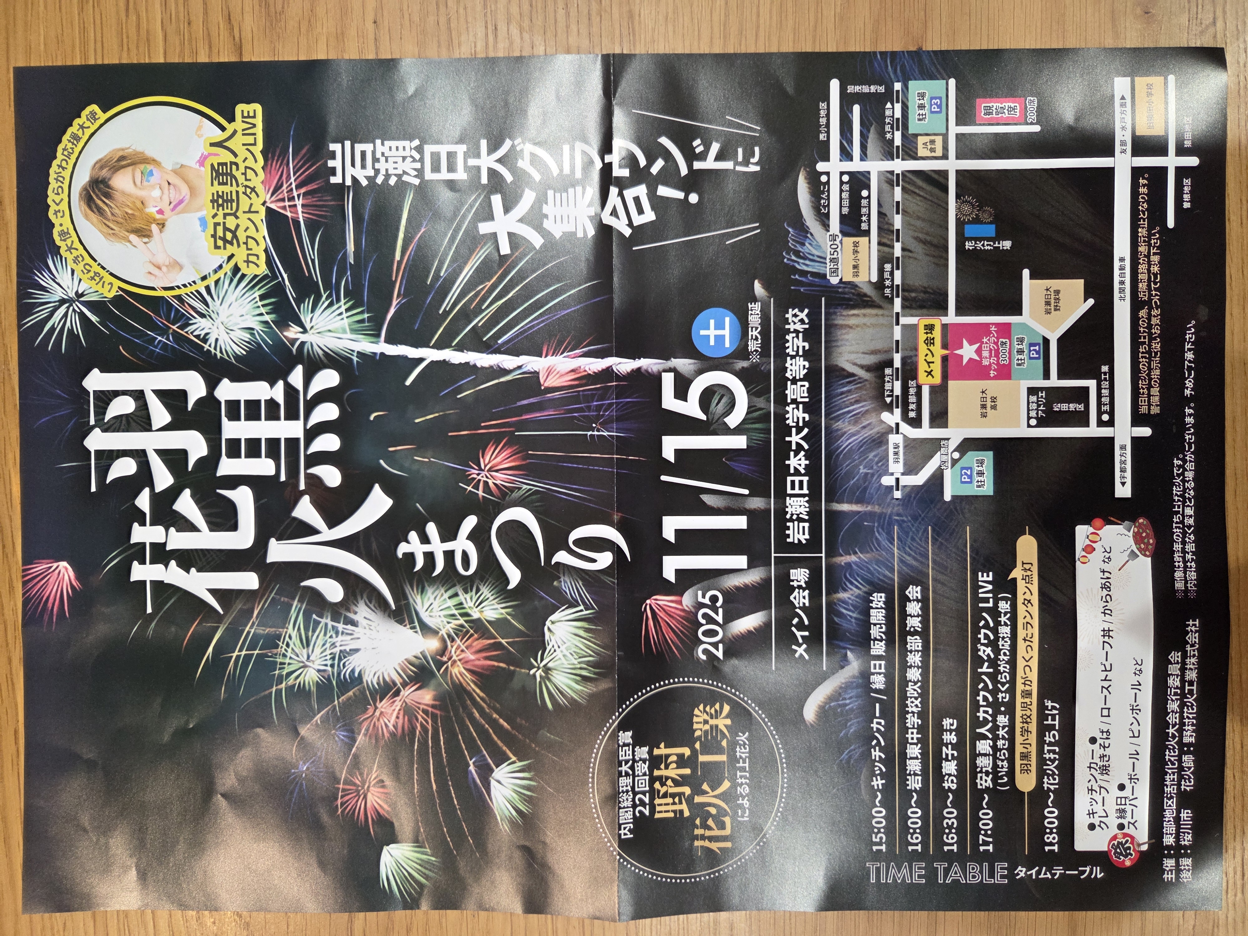 羽黒花火まつりが、11/15㈯に、岩瀬日大グラウンドで開催されます。