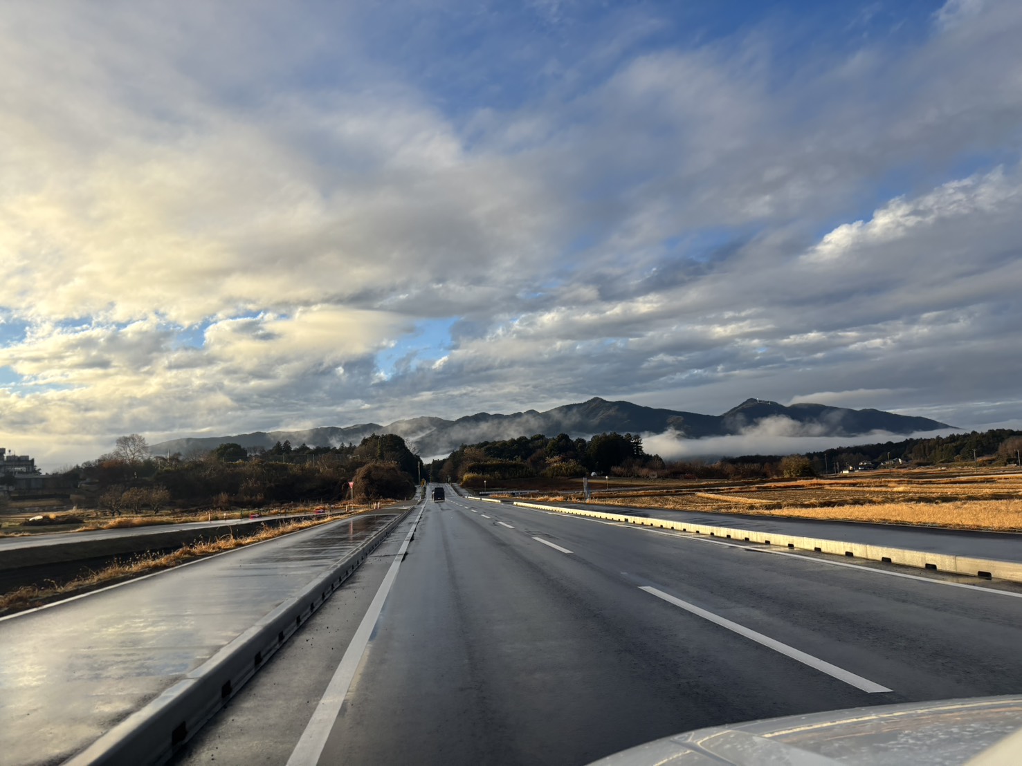 上曽トンネルはとても長いですね。雲が低く夕方の綺麗な景色でした。