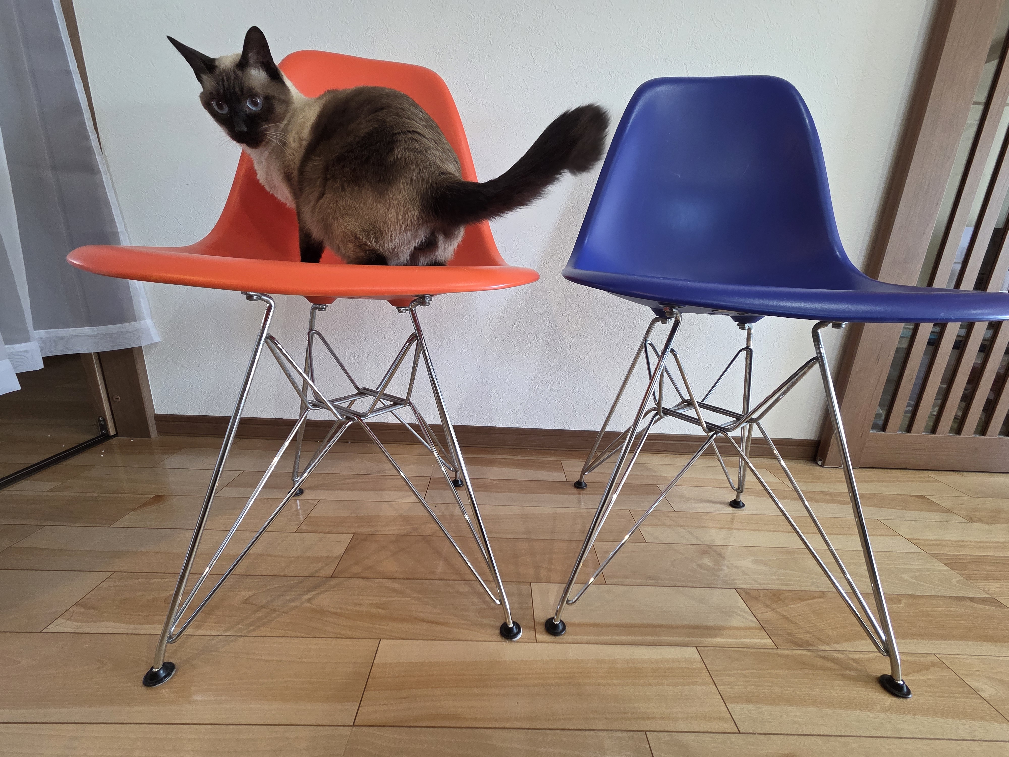 インテリア家具 ミッドセンチュリーデザイン、イームズサイドシェルチェアのご紹介。 エッフェルベースでヴィトラ社製の赤と青です。 よごれててすみません、ねこのお気に入りの椅子です。 家も家具やインテリアも様々です、好みも人それぞれ。 年齢や趣味でも変わってきますね。みなさんはどんな家具がお好みですか?